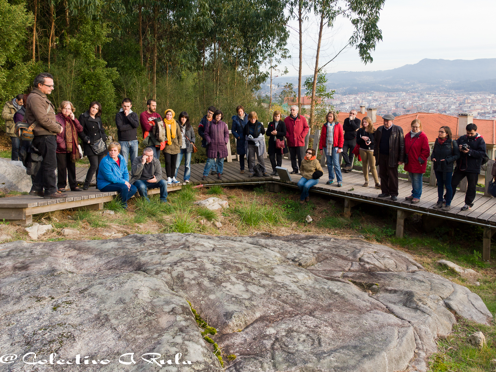O pasado sábado 14 de decembro algúns membros do noso colectivo achegámonos ata a Área Arqueolóxica da Caeira no pontevedrés concello de Poio. A proposta da empresa Galipat consistía nunha visita guiada ás laxes máis senlleiras deste moi interesante conxunto guiados polas explicacións do arqueólogo Manuel Santos Estévez. A actividade non defraudou ás máis de trinta persoas que acudiron e puideron escoitar interesantes hipóteses interpretativas e conversar co especialista.