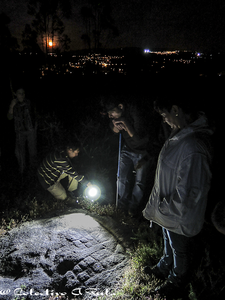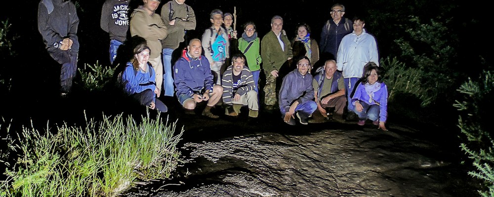 Na noite do pasado sábado 15 de xuño unha vintena de persoas participaron na primeira visita guiada nocturna ás estacións de arte rupestre localizadas no Monte de San Miguel, no lugar de Portela, na santiaguesa parroquia de Villestro. Unha andaina “piloto” que tiña como obxectivo avaliar cos nosos convidados a súa experiencia e estudar posibles erros e melloras para futuras visitas.