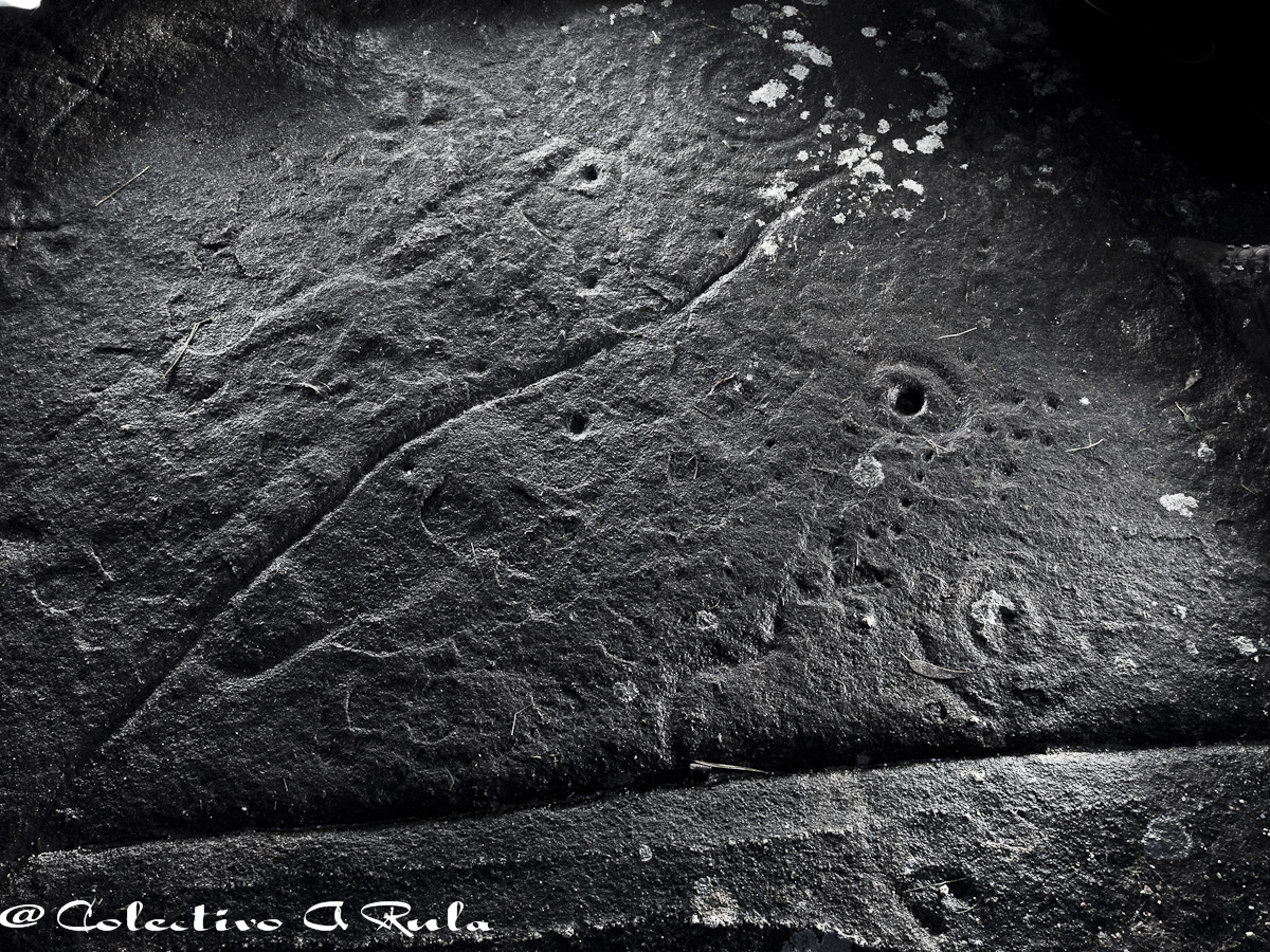 Non podiamos rematar a xornada sen visitar algún dos excepcionais petróglifos de Rianxo, e xa no lusco e fusco achegámonos a estación rupestre da Foxa Vella, no monte da Pena, na parroquia de Leiro1  Coa axuda do noso equipo de iluminación, e seguindo as indicacións de Xosé Carlos, contemplamos polo miúdo unhas das mellores rochas panoplias do noso país.