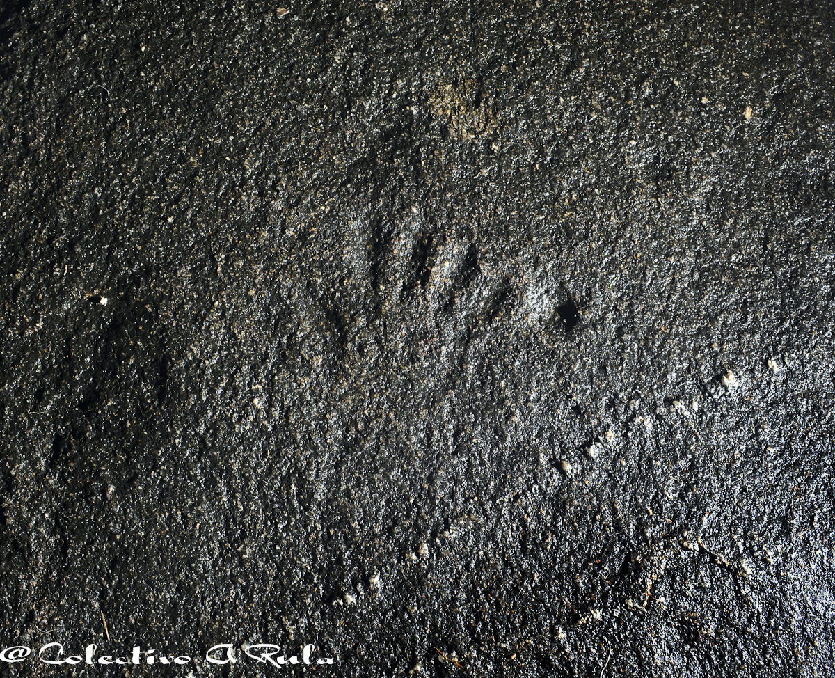 Un caso aparte é o da representación dunha pequena man gravada na zona inferior da laxe motivo este de difícil adscrición cronolóxica e que constitúe un únicum dentro do ámbito rupestre galego.