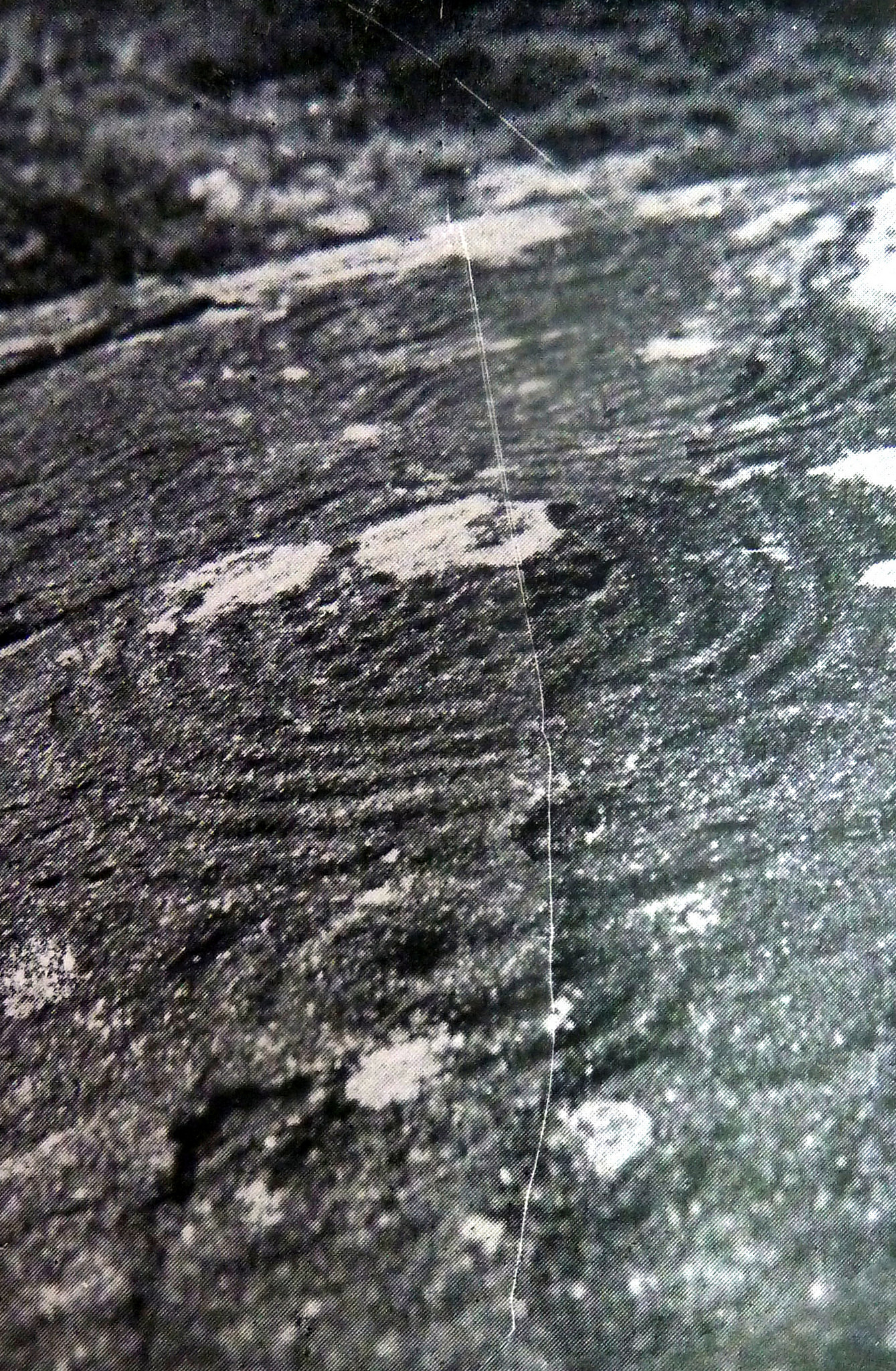 Achega o autor tamén unha fotografía da laxe que figura neste interesante noticiario arqueolóxico que, sen dúbida, constitúe unha fonte fundamental para pescudar os primeiros achados de arte rupestre na comarca de Compostela.