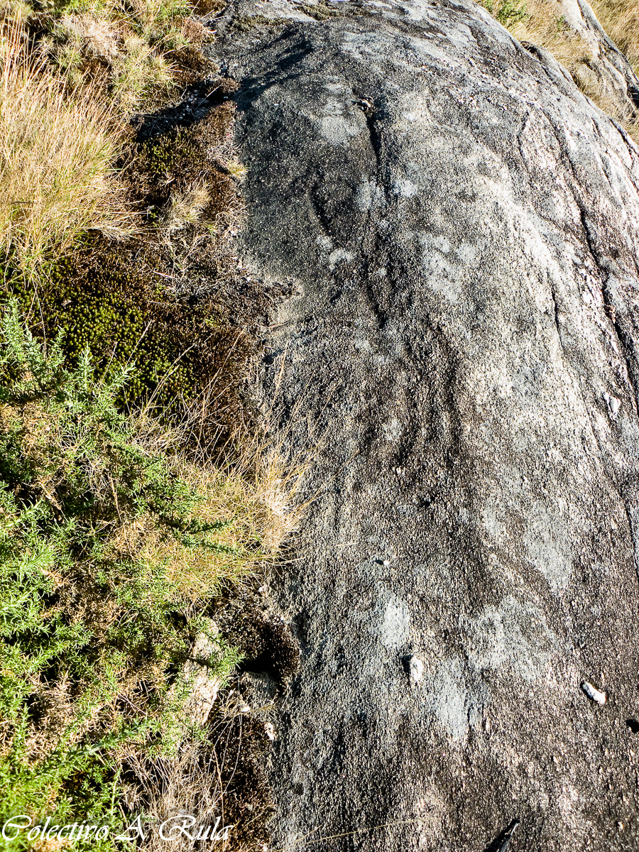 Algo así sucedeu hai un par de semanas, cando nunha revisión máis dos vellos sendeiros que do lugar do Castelo conducen á zona da grande laxe con gravados da Peneda Negra, localizamos máis de sesenta anos despois a laxe dúas do Monte das Pedras. A nosa intención inicial era a procura de novos vieiros de acceso ó magnífico e pouco valorado petróglifo da Peneda Negra e a constancia levounos a dar con outra mostra non menos excepcional da nosa arte máis primixenia, unha xoia perdida. [2]