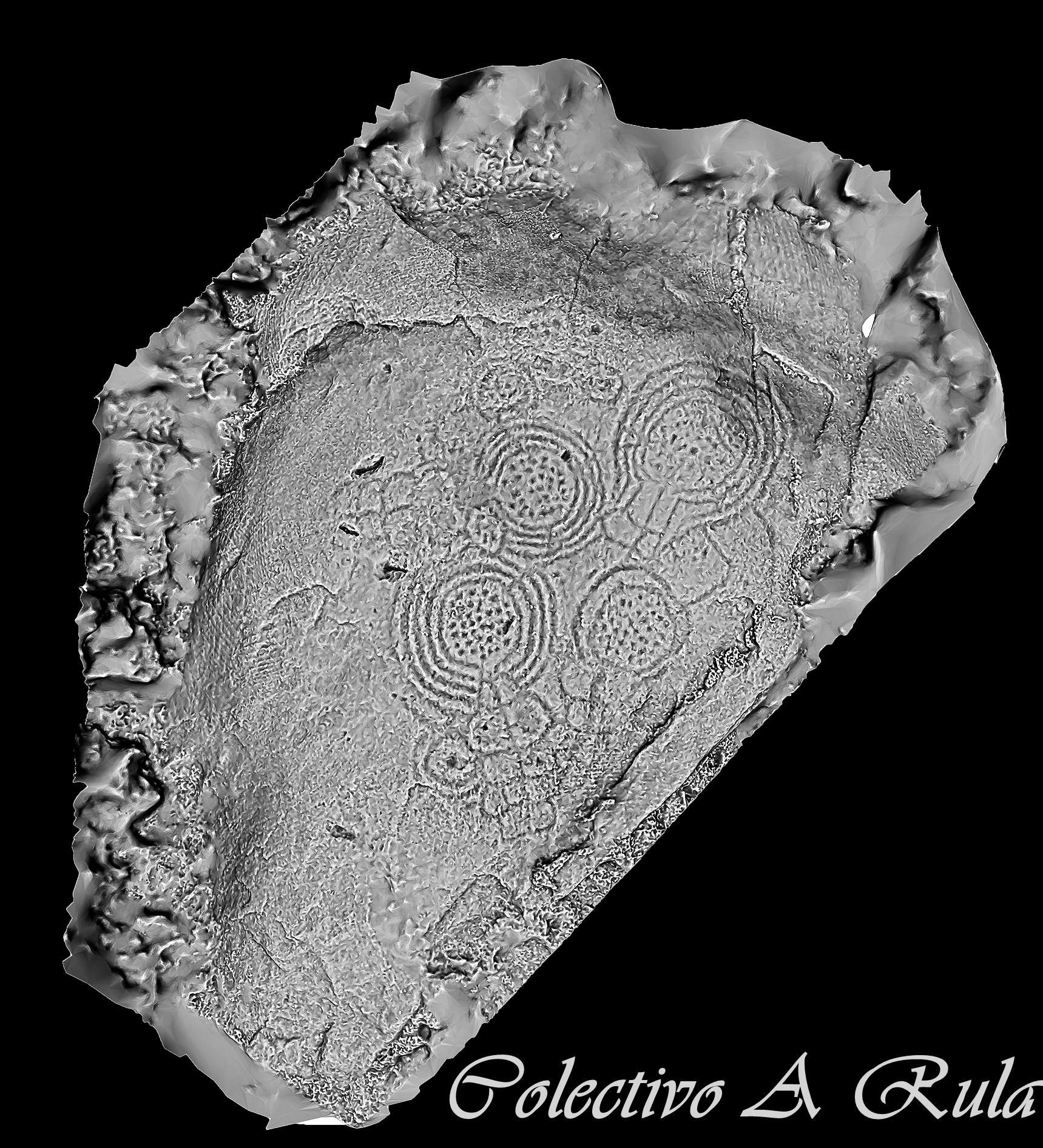 Para o estudo inicial do petróglifo partiamos do deseño de Enrique Campo. As fotografías diurnas ó abrente e ó solpor da estación non permitían unha descrición precisa dos motivos, polo que decidimos empregar as ferramentas xa tradicionais como a fotografía nocturna pero tamén achegarnos as novas ferramentas de fotogrametría e virtualización 3D aplicadas á arte rupestre.