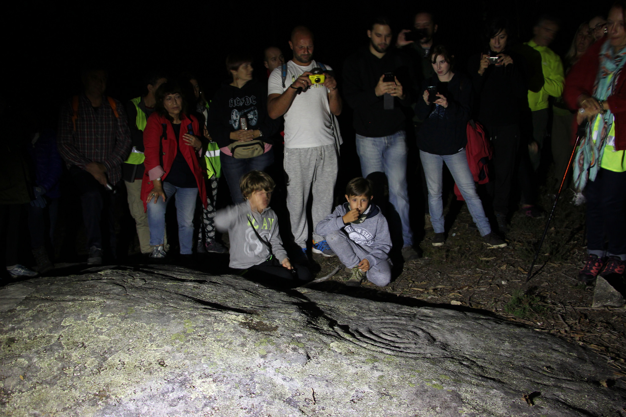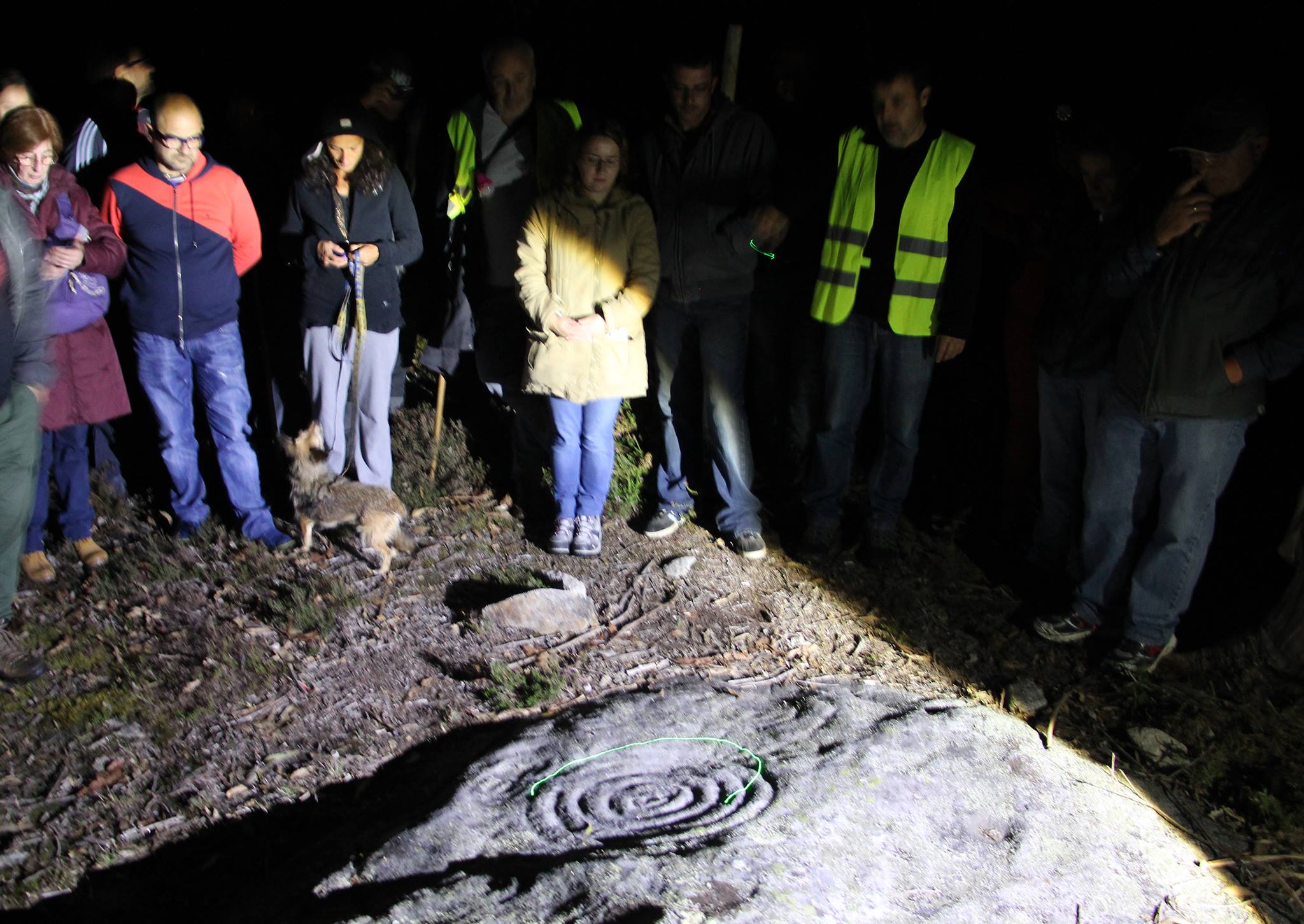 aqueles asistentes que coñecían previamente as laxes quedaron abraiados dos segredos que ocultaban estes paneis iluminados coas nosas lanternas e focos. O percorrido realizado destacaba pola gran diversidade de motivos que posúen estas laxes, dende os característicos gravados de temática xeométrica, que caracterizan á arte rupestre galaica e atlántica, ós gravados de motivos figurativos en Río Angueira 2 ou na laxe panoplia de Outeiro do Corno 1 co seu singular deseño central. Unha ampla variedade de figuras que espertou gran interese e innumerables conversas que denotaban a curiosidade amosada por todos os participantes.