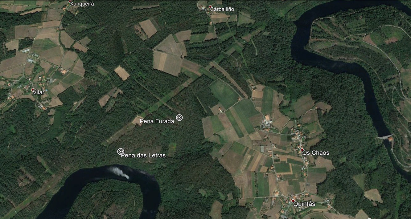 O petróglifo sitúase no Monte da Pena Furada ó carón do chamado “camiño das Chousas”, que cruza o monte e enlaza coa estrada que comunica as parroquias de Calvos e Circes.