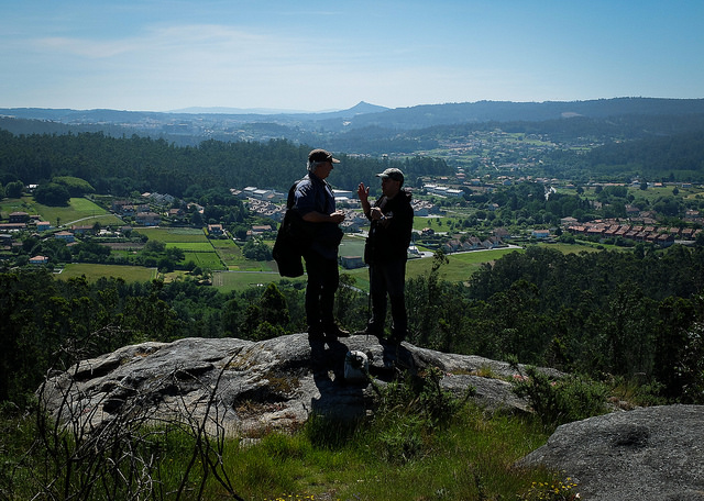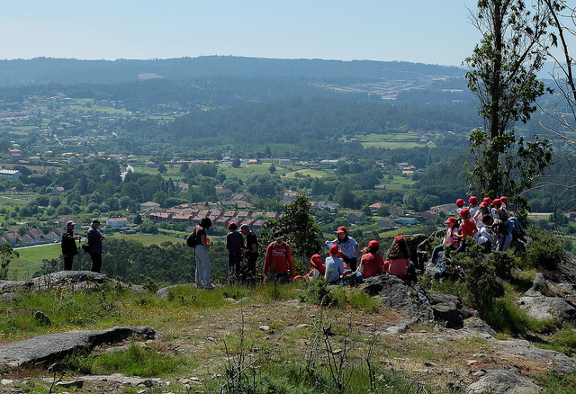 A visita rematou no alto da Devesa da Rula, nos Cortellos, desde onde divisamos e saudamos ao Pico Sacro e ao Monte Pedroso antes de iniciar o descenso e despedirnos na vella ponte de Brea que viu pasar a tantos peregrinos. Os nenos marcharon con algúns recordos do Colectivo (adhesivos varios con petróglifos) pero, como dixo unha nena habilmente, ‘a min me gustaron moito os regaliños pero o que a min máis me gustou foi a experiencia que tiven’. De novo, os nenos e nenas ensinándonos o que os adultos a miúdo esquecemos. Desde aquí, as nosas grazas a todas as nenas e nenos de 3º da Escola de Primaria de Villestro e aos seus mestres.
