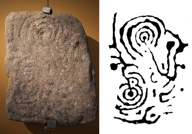 Petróglifo de Codeseda. Imaxe e calco. Hoxe no Museo de Pontevedra
