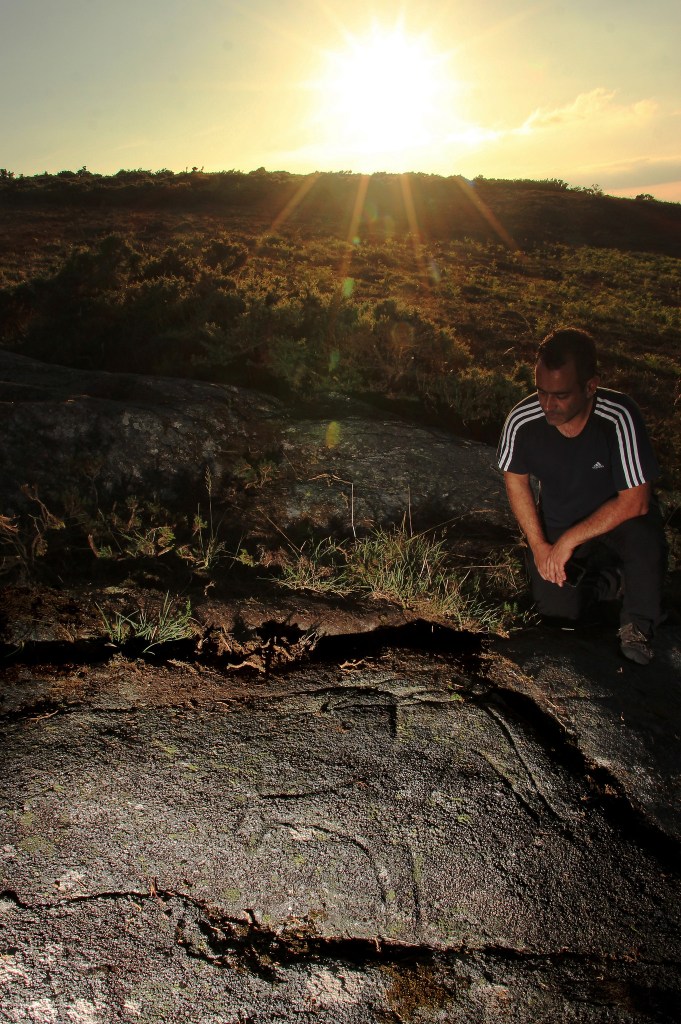 O propio Jorge Fernández, co que mantemos amizade e colaboracións permanentes, púxose en contacto co Colectivo A Rula para que puideramos valorar o seu achado. Deste xeito, e só uns días despois, tivemos a fortuna de que varios membros de Codeseda Viva nos guiaran ata o xacemento e nos amosaran o impresionante entorno natural desta serra, nunha xeira ao solpor que quedará na memoria dos membros do Colectivo e entrará na pequena historia que de vagar vai percorrendo A Rula.