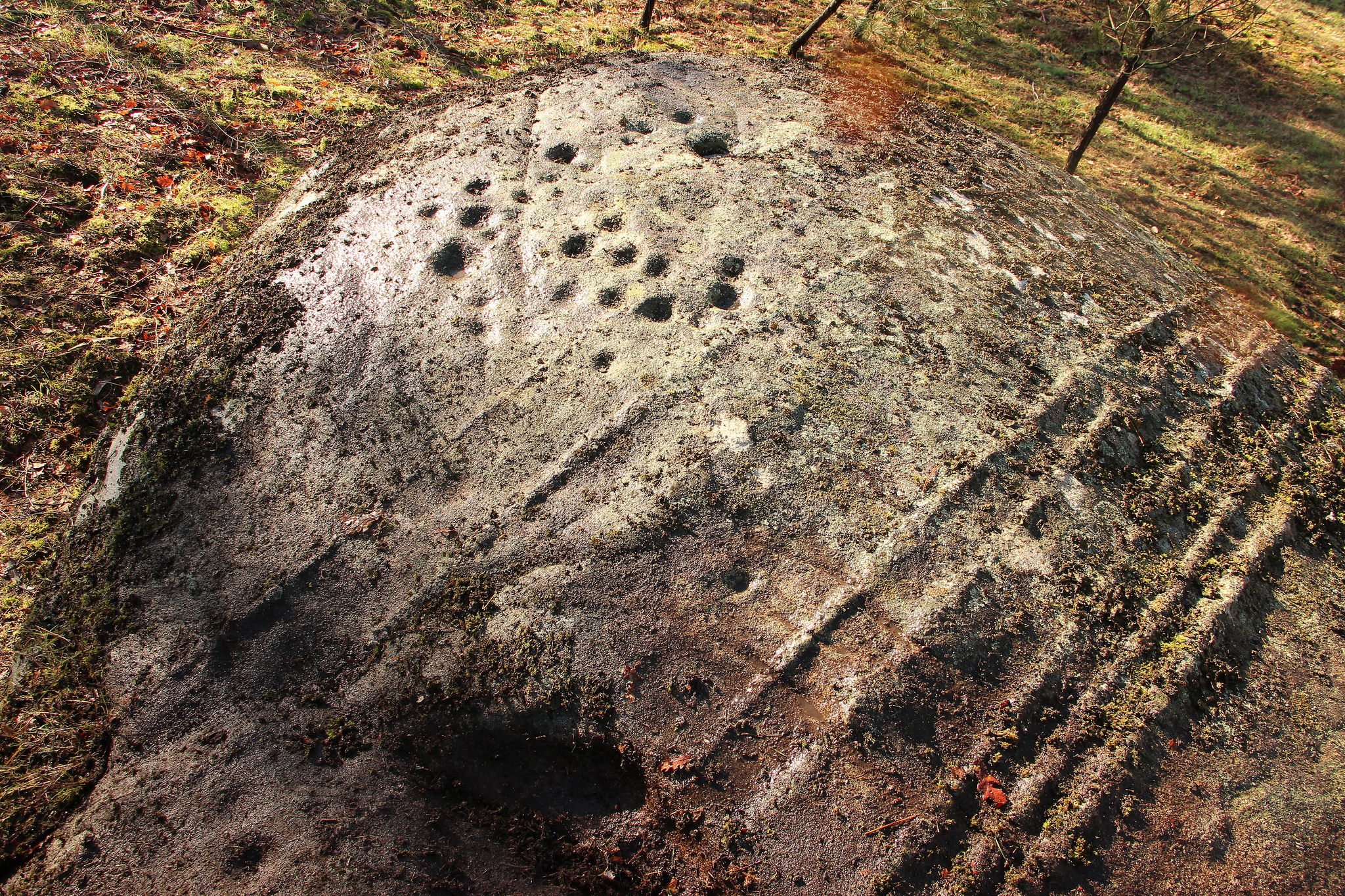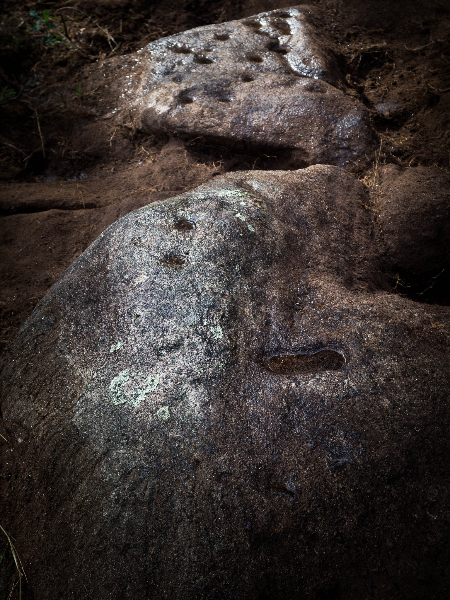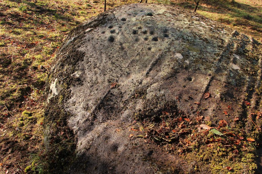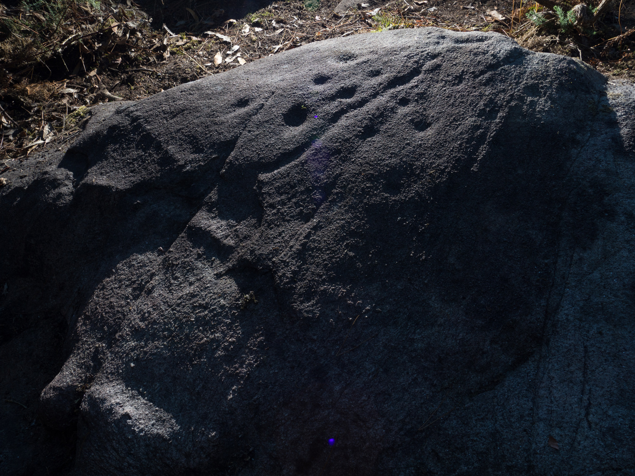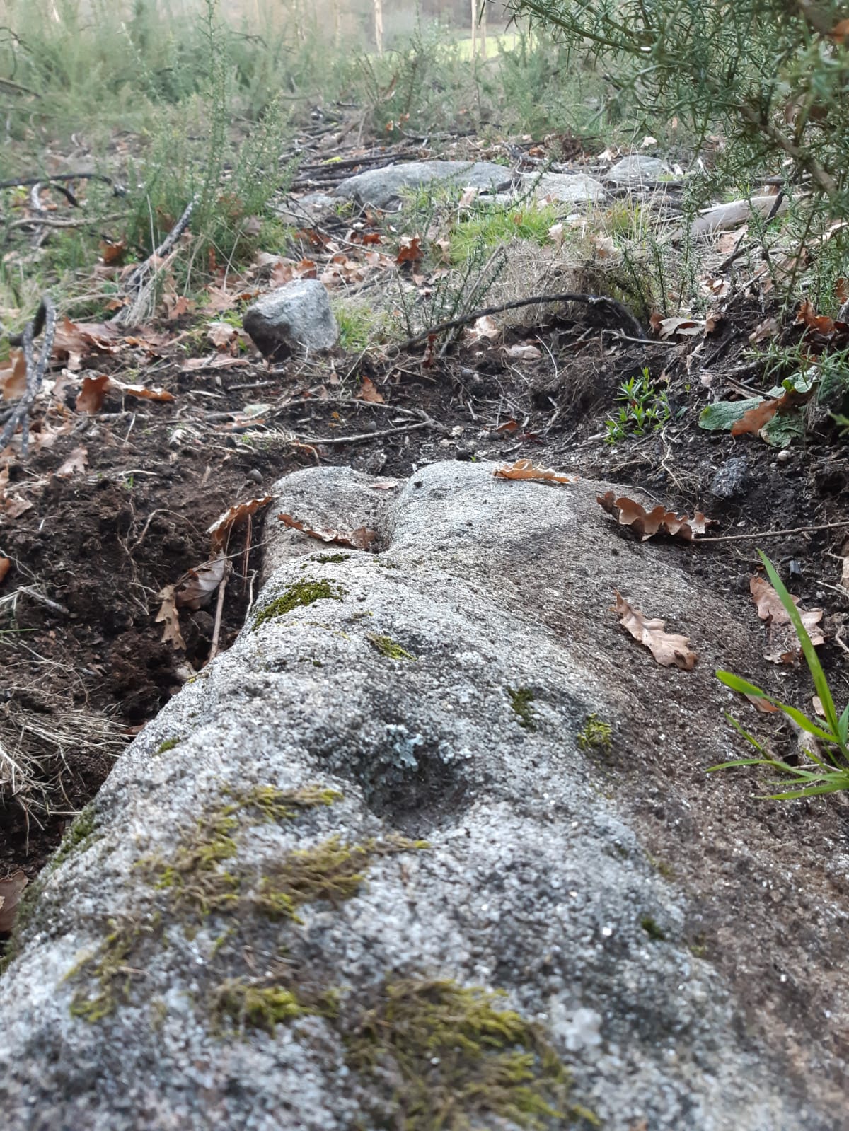 Neste sector apréciase que a rocha foi partida con posterioridade a ter sido gravada xa que unha das coviñas está incompleta.