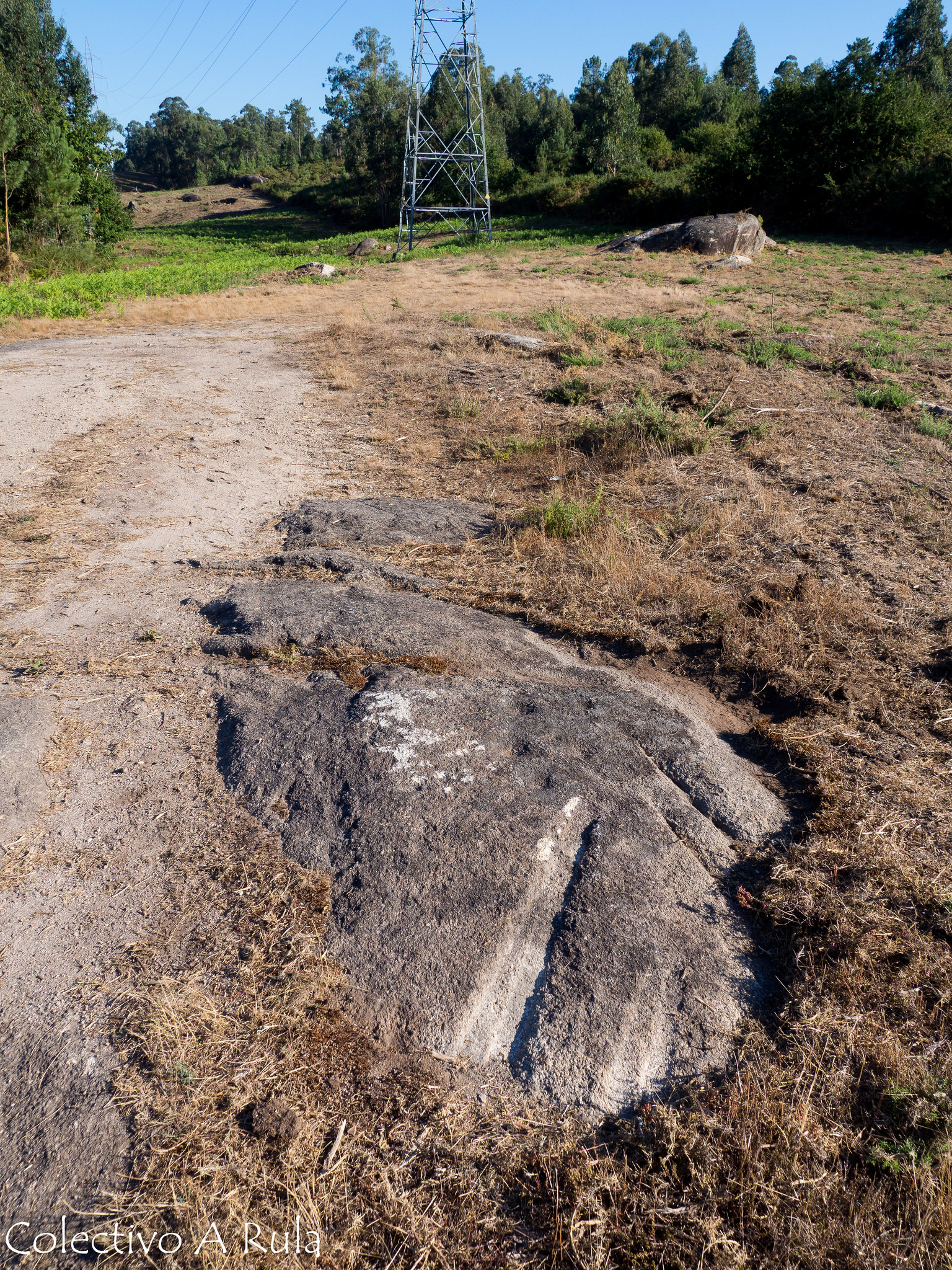 Localízase nunha peneda de grandes dimensións de granito de gran groso, destacada no terreo e situada ó pé dunha liña eléctrica de alta tensión (coordenadas UTM 29 T 529565 4747443 e unha altitude de 92 mnsm).