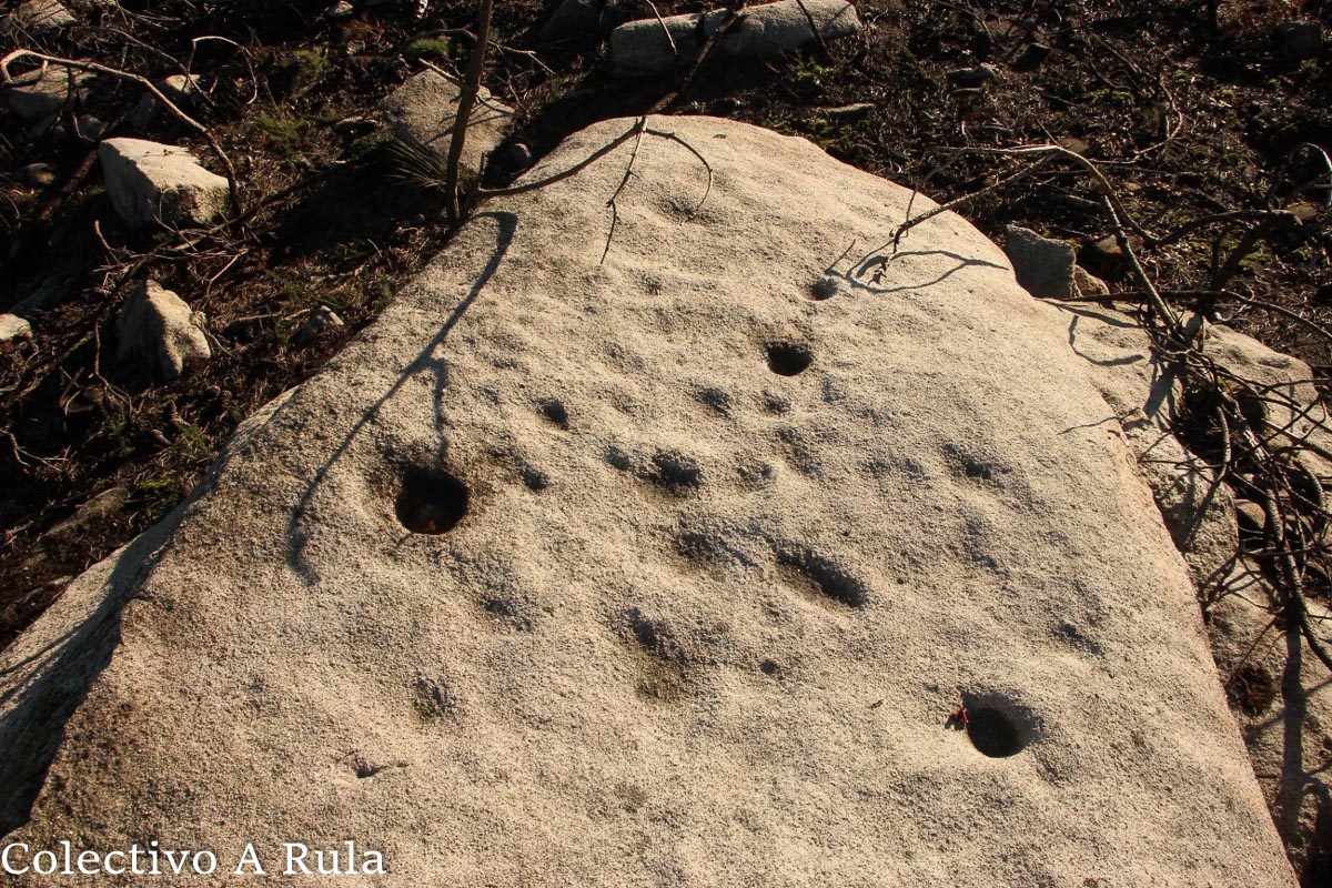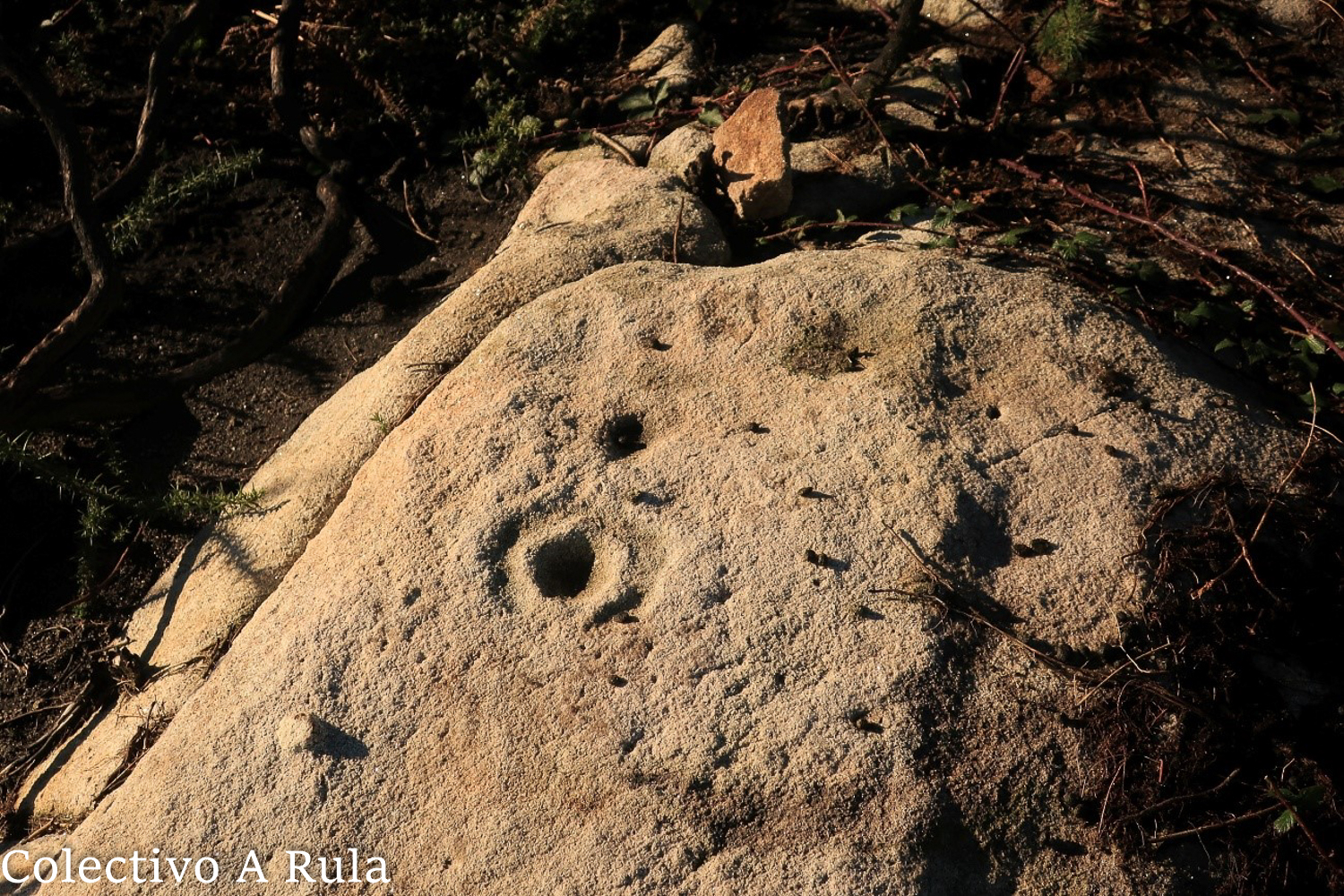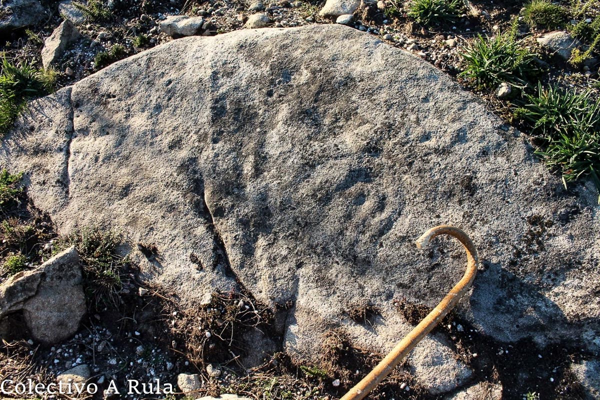 Nunha rocha case plana (205 x 200cm.) que sobresae do chan uns 50 cm., situada próxima ó camiño e preto dun dos “chouzos” que aínda se conservan na zona, figura un anel simple de 12 cm. de diámetro con coviña central de 7 cm. e 2 de profundidade.