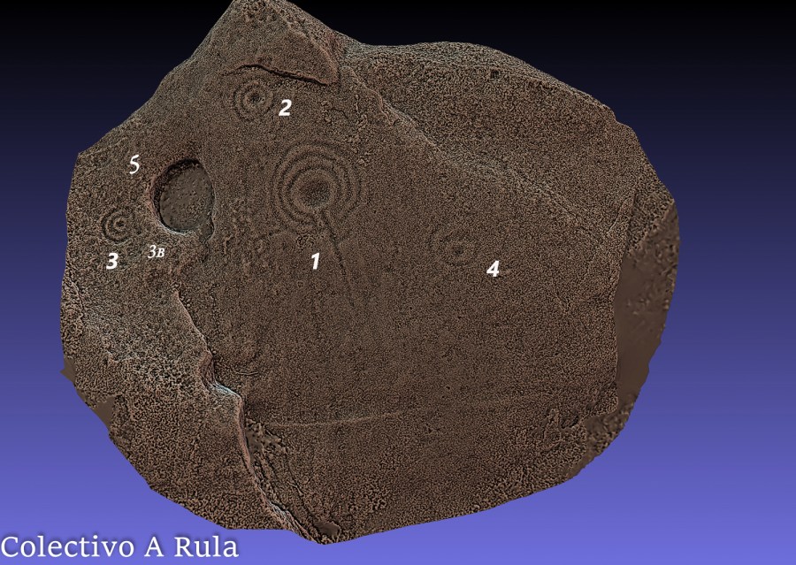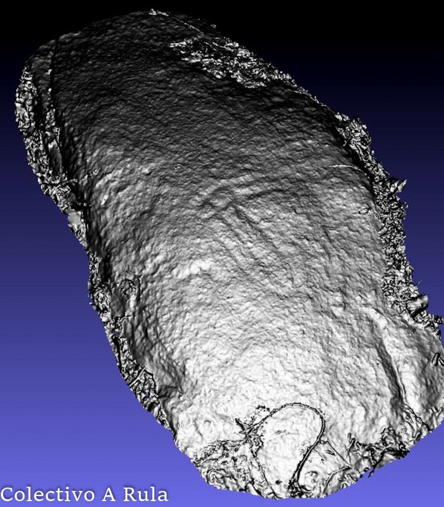 Nos modelos 3d realizados deste panel central aprécianse restos moi erosionados (pouco perceptibles) doutras combinacións así como doutros deseños de difícil interpretación.