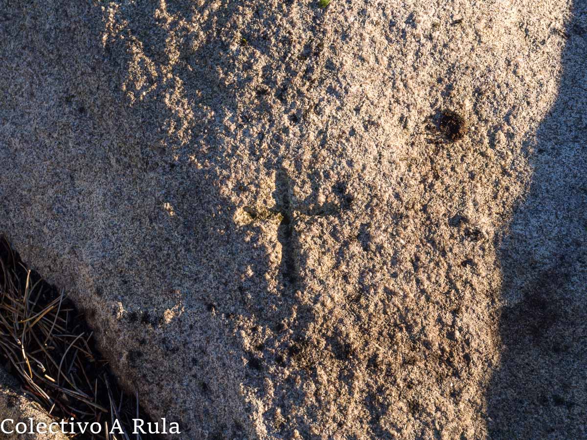 A 14 m ó E desta primeira estación localízase unha laxe cun único gravado, un cruciforme histórico de 14 cm. nos cabos por 11 cm. nos brazos de clara factura histórica realizada cunha ferramenta metálica, presenta un suco fino duns 2 cm. de ancho e 1 cm. de profundidade. Probablemente unha cruz de termo pois localízase na parte superior e máis visible do penedo.