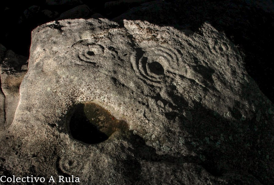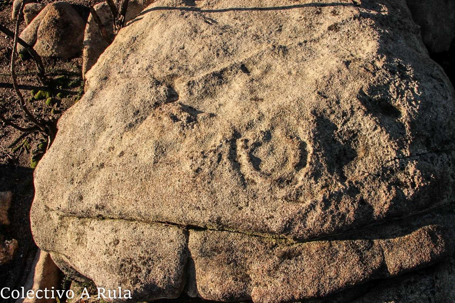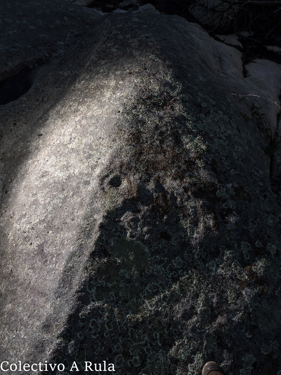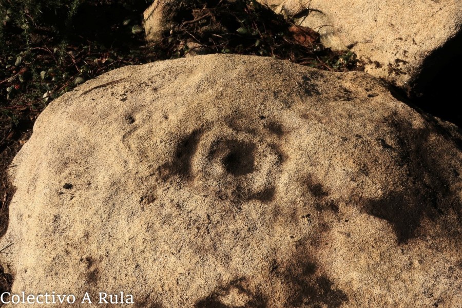 Na segunda visita ó petróglifo identificamos na parte central do panel un círculo moi erosionado duns 20 cm. con coviña central de 3 cm.