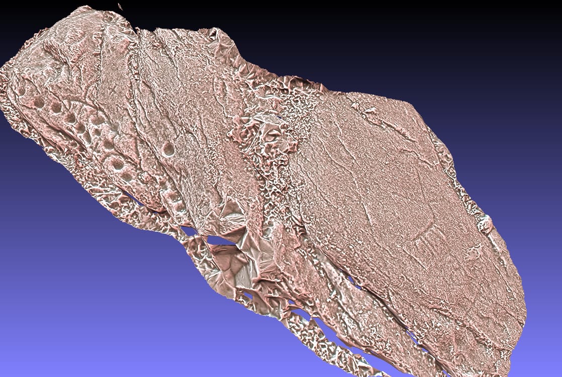 Aplicando unha vez máis o recentemente aprendido, prestamos especial atención aos bordes do afloramento orientados cara o sur e o sueste e ao pouco tempo localizamos no centro dunha superficie inclinada un longo e profundo suco recto. Deseguida decatámonos de que formaba parte da figura dun gran cervo de longos cornos. A continuación, obviamente, procedemos a analizar en detalle a peneda.