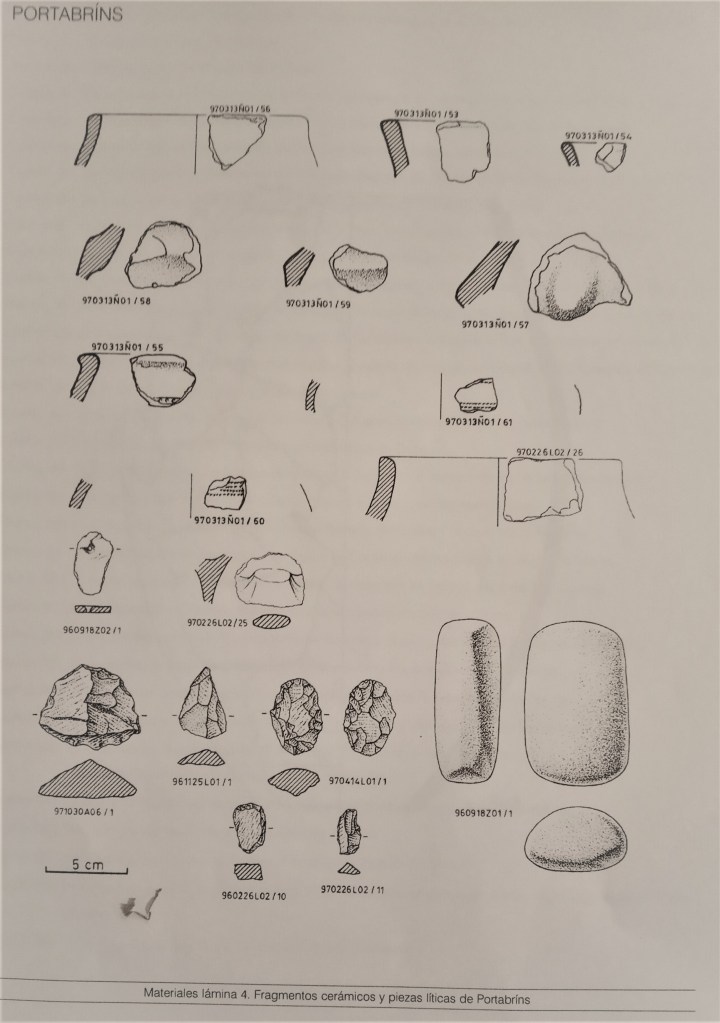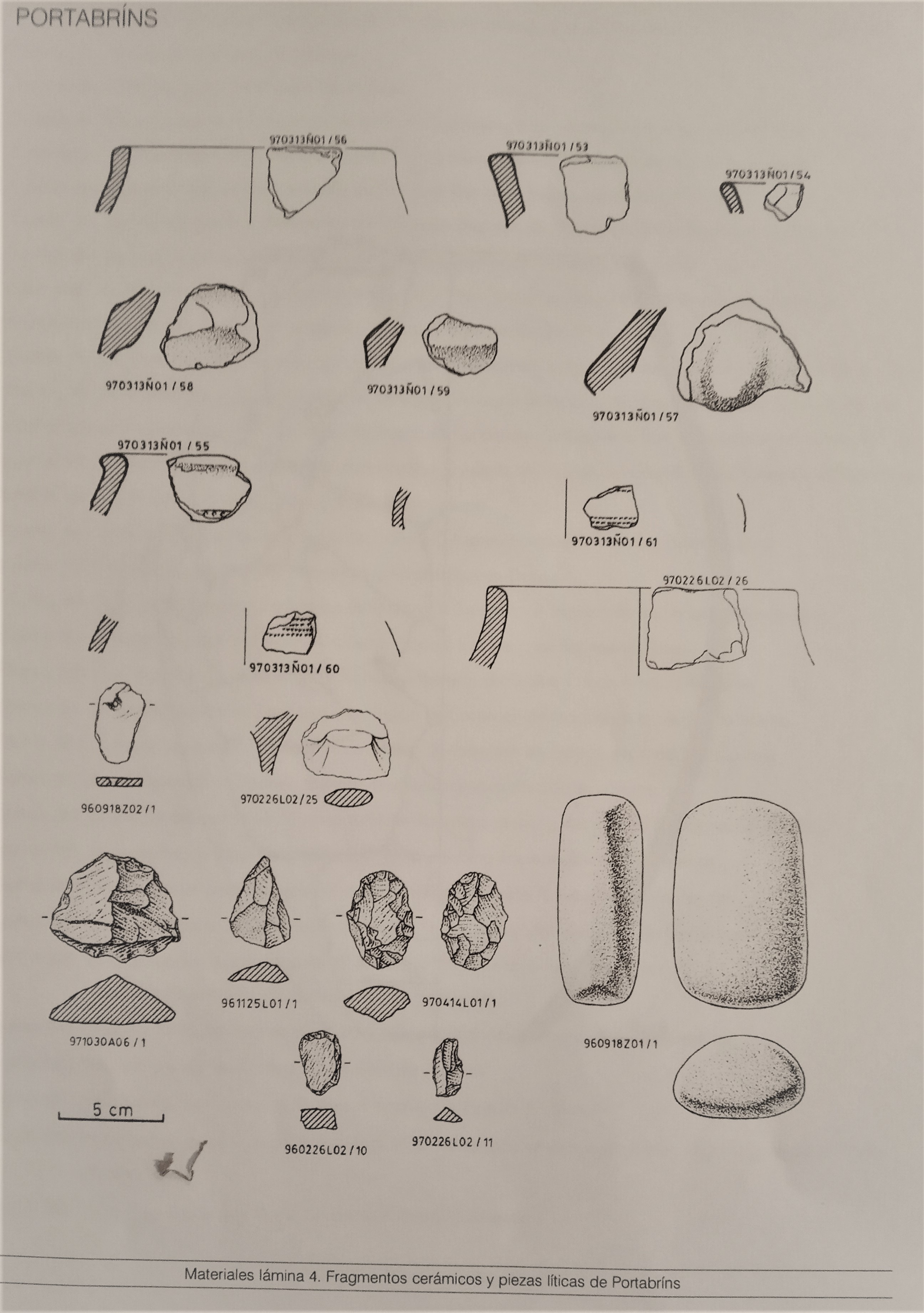 O de Portabríns localízase nas abas do monte Pedroso, foi localizado na última década do século pasado durante os traballos de seguimento e control arqueolóxico para a construción da Rede de Gasificación de Galicia. Sitúase a 1 km dos petróglifos de Casa do Frade 1 e os Gorgulliños. Trátase dun xacemento doméstico, dun conxunto de habitación aberto, non visible en superficie e composto orixinalmente por estruturas non permanentes, elaboradas con materiais perecedoiros do que só se conservan aqueles elementos escavados no xabre e na rocha. Así, os elementos documentados son os habituais neste tipo de xacementos, fosas globulares e pseudoglobulares (7 exemplares), buracos de poste (4) e estruturas liñais (3) que se distribúen dispersas ao longo de 350 metros liñais da gabia aberta para a canalización do gas. Recolléronse un total de 18 pezas líticas e 191 fragmentos cerámicos, presentando tres deles decoración de tradición campaniforme (composición en bandas horizontais).