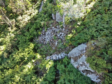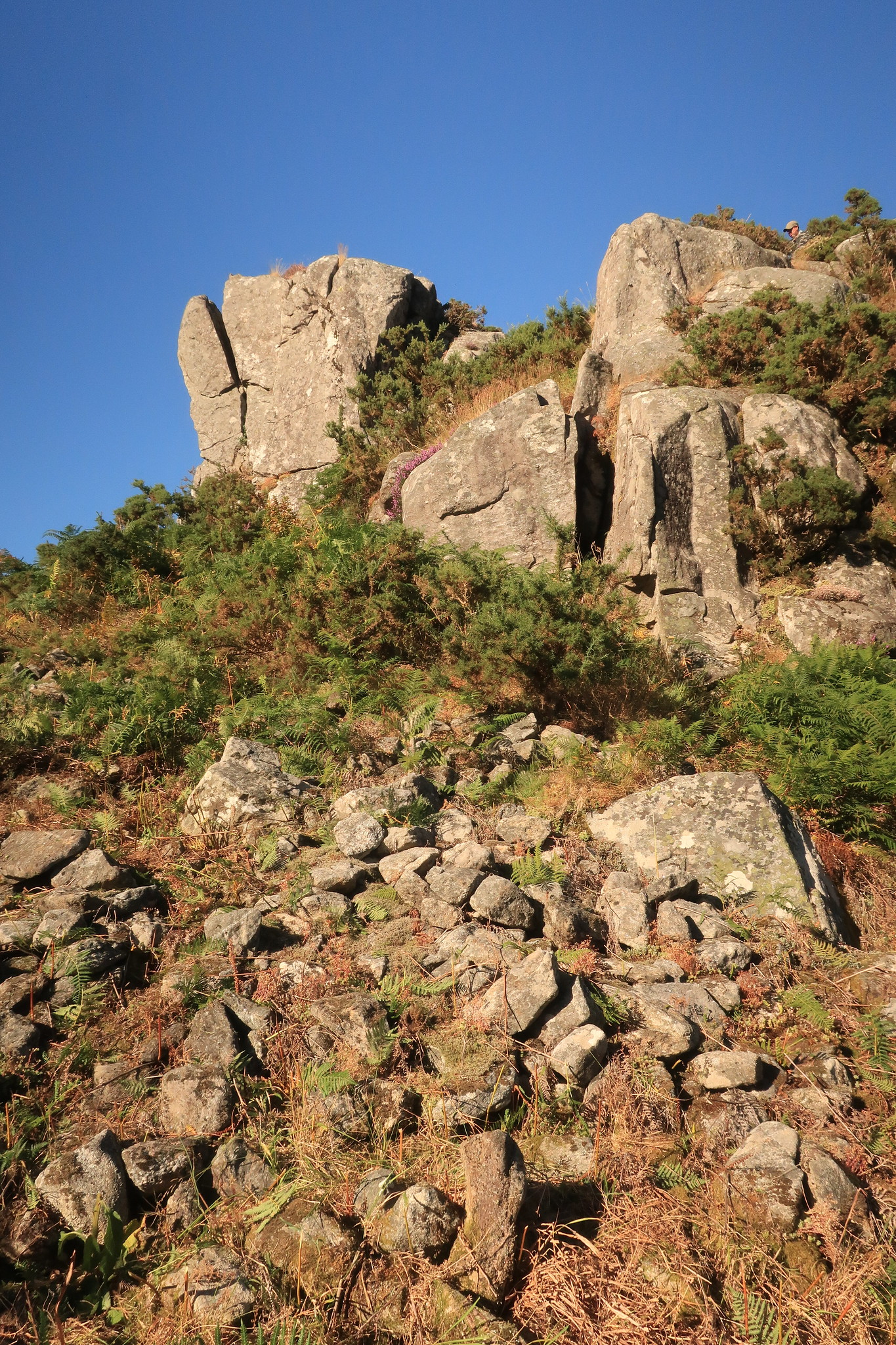Este “anel pétreo” desaparece ou é moito máis estreito no lateral NE – E, precisamente na zona onde o terreo presenta un menor desnivel e a caída non é tan pronunciada como na zona S.