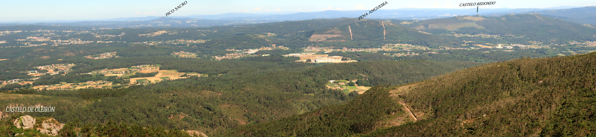 Dende o cume do afloramento gozamos dunha excelente vista das montañas doutro lado do val, sobre todo do chamada Pena de Angueira ou Casa das Meigas onde se catalogou outra destas atalaias situada case en liña recta seguindo dirección SE. Tamén son facilmente localizables na paisaxe as fortificacións en altura do Castelo Redondo e do Castro Valente e mesmo a do Pico Sacro se ollamos cara o NE.