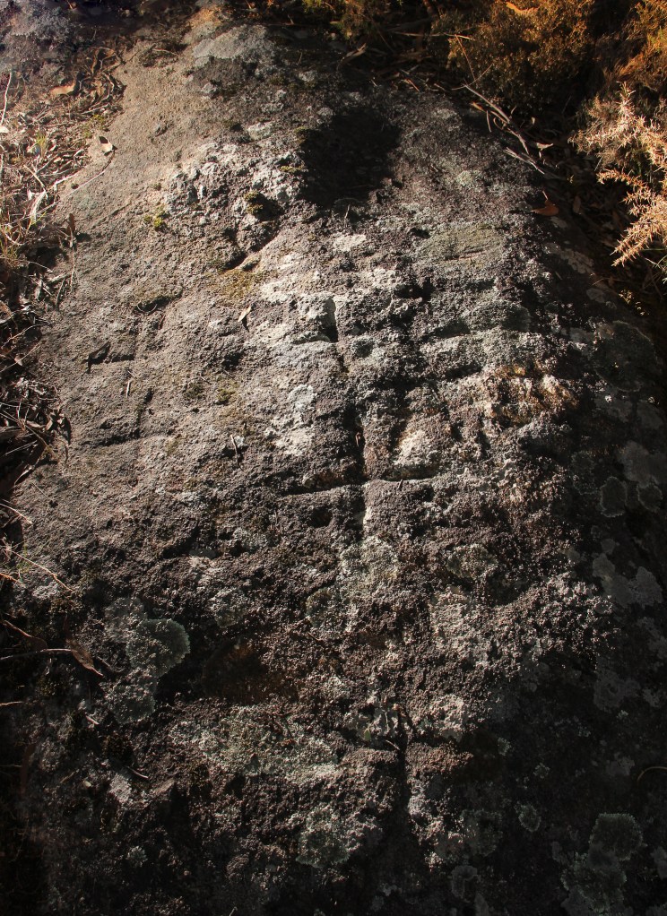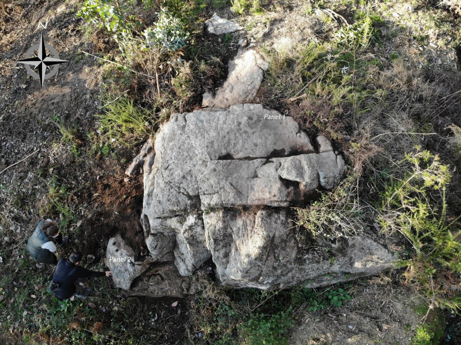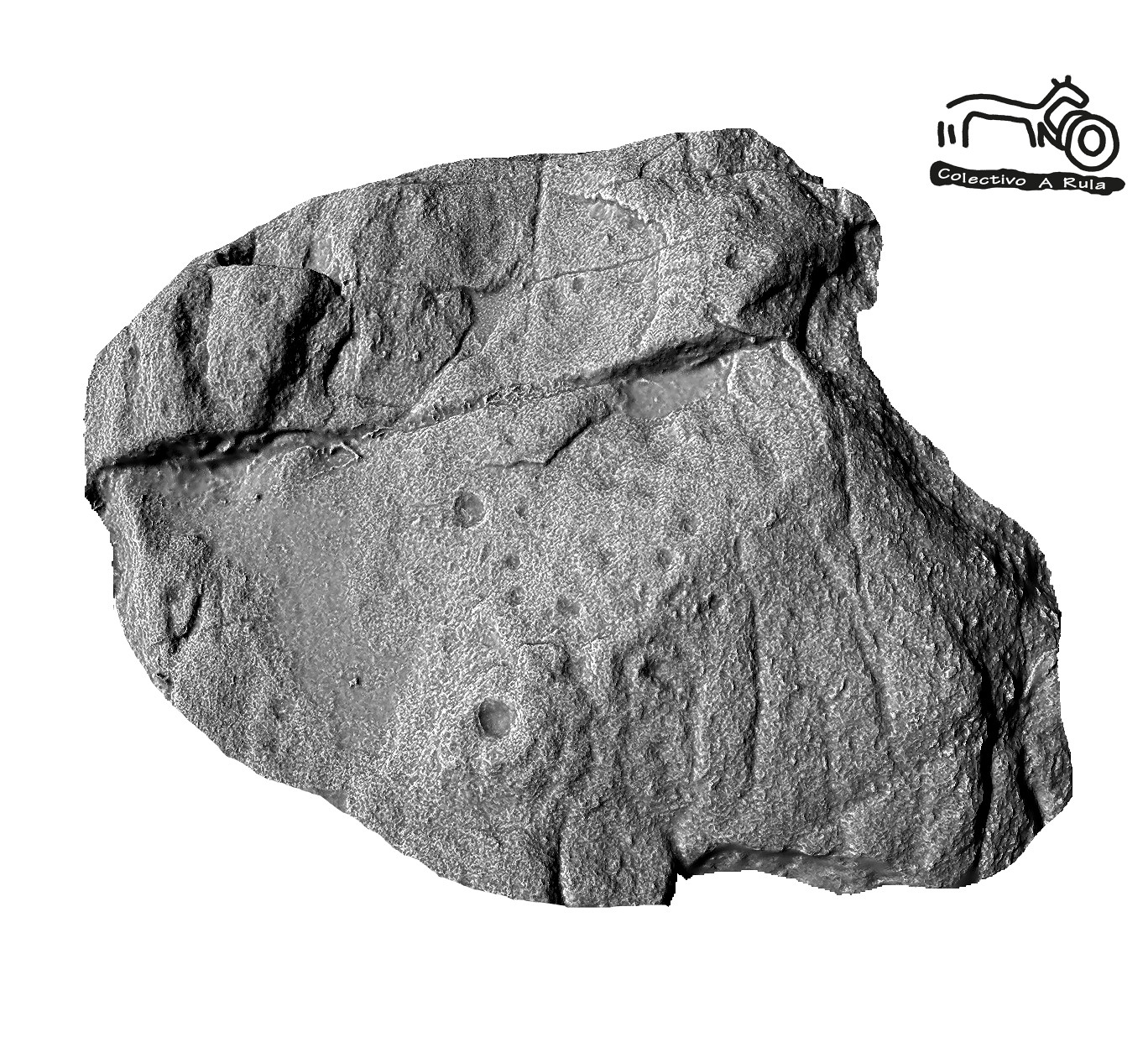 Logo da realización de diferentes modelos fotogramétricos e fotografías nocturnas con luz rasante, apreciamos restos moi erosionados de ata dúas combinacións máis (unha delas de ata 3 aneis), outros sucos indefinidos e posibles aneis con coviñas centrais distribuídos por todo o panel.
