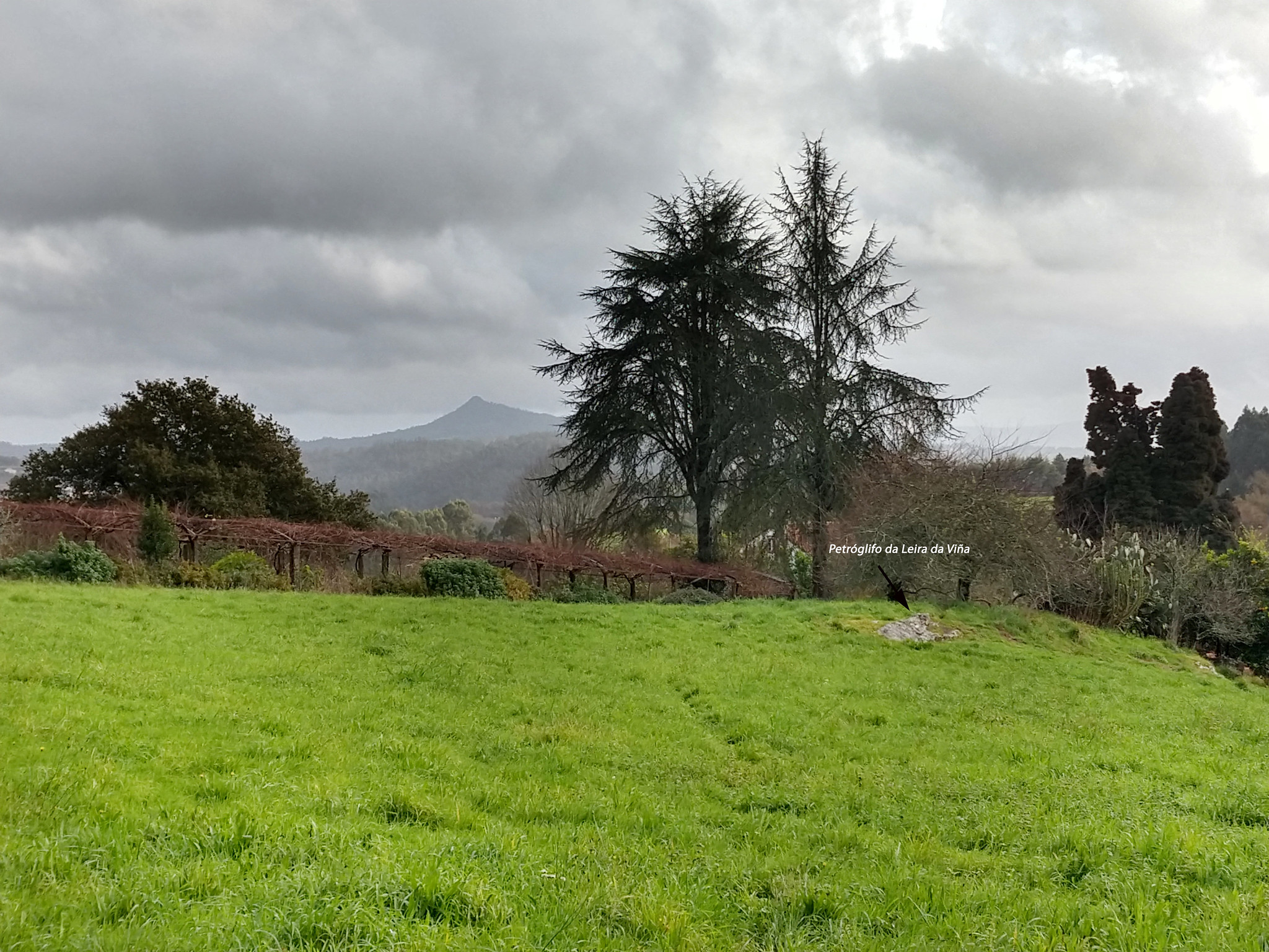 Dende a laxe temos unha vista privilexiada do Pico Sacro case en liña recta mirando en dirección sur. O petróglifo conta con tres únicas coviñas, de 8 cm de diámetro e 4 de profundidade, de 5 cm e 1,5 a mediana e unha terceira de 4 cm de diámetro e 1 cm de profundidade.