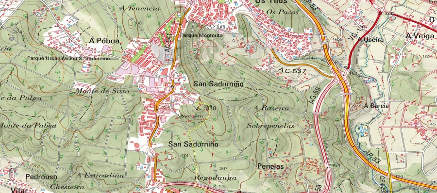 Esta zona norte da parroquia de Cacheiras é un lugar de paso e encrucillada de camiños á entrada da capital xacobea. Dende o medievo os peregrinos que accedían as terras de Compostela polo camiño de Pontevea divisaban por primeira vez a catedral Compostelá á beira da desaparecida Capela de San Sadurniño, que cristianizaba este antigo milladoiro no linde do Xiro da Cidade. No sitio de “A Tenencia”, entre Montouto, Penelas e Cobas o Cabido Catedralicio contou con importantes posesións durante o Antigo Réxime e mantívoas ata ben entrado o século XX.