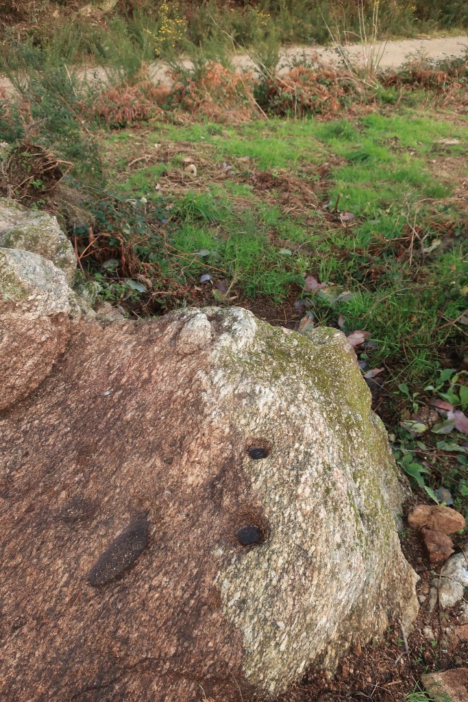 Na parte inferior do afloramento, case a rentes do chan localizamos un segundo panel formado por dúas cazoletas aliñadas en dirección O-E de 6 cm de diámetro e 3 de profundidade, e 7 cm de diámetro e 4 de profundidade, respectivamente.