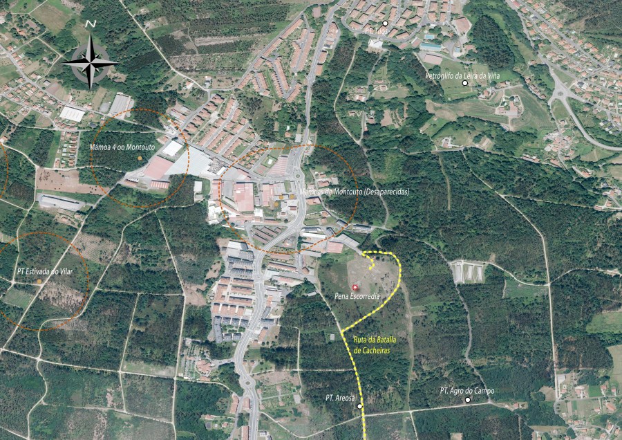 Neste rico contexto cultural, as recentes descubertas evidencian agora que tamén foi unha zona de certa importancia na Prehistoria. Ós xacementos xa documentados nos anos cincuenta do pasado século, como as mámoas da necrópole megalítica do alto de Montouto, da que hoxe só se conserva a chamada Mámoa da Cova da Pereira / Mámoa 4 do Montouto (GA15082001) e da que falamos nunha entrada previa neste blog, temos que engadir agora varias estacións de petróglifos.