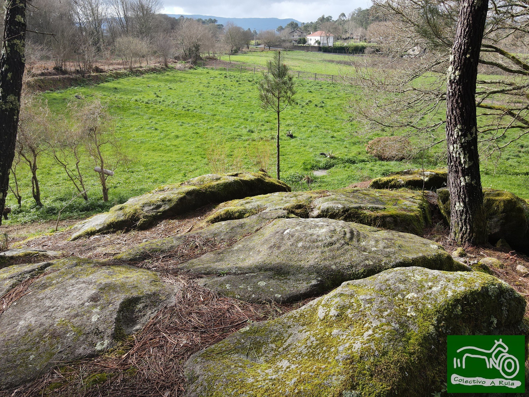 Porque, cal outra sería a razón da existencia de toda esta concentración de arte rupestre, con representacións abstractas de posibles divindades femininas? A beira do camiño de Santiago a Fisterra, con vistas ao pazo da Raiña Lupa no cumio do Pico Sagro, a señora e soberana do territorio nas Terras de Compostela…