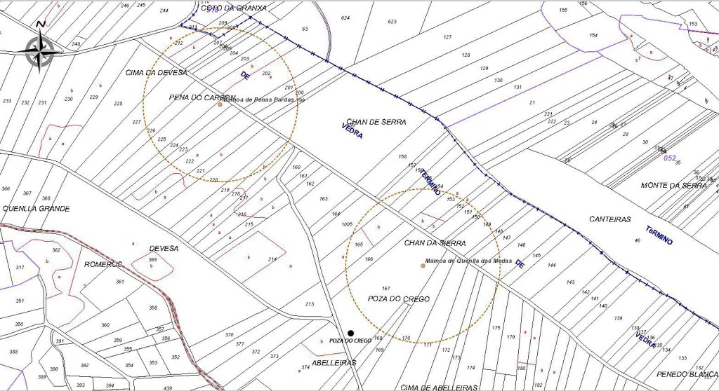 Os traballos de deforestación que se están a executar na parcela na que se localiza poñen en risco a preservación deste singular elemento. Non temos constancia de que exista ningún tipo de control nin seguimento das tarefas por técnicos cualificados, nin observamos os balizados preventivos na poza do Crego nin da mámoa da Quenlla das Medas. A empresa está a empregar maquinaria pesada na tarefas de tala e limpeza nas proximidades de ambos xacementos e imaxinamos que o seguirán a facer no proceso de plantación das vides.