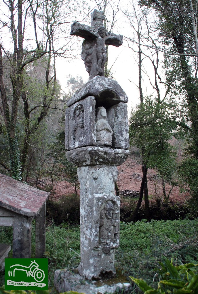 Curiosamente esta figura do bispo bendicindo coa man dereita e sostendo o báculo coa esquerda repítese noutros cruceiros próximos, como o da aldea da Amañecida, tamén en Luaña, ou no cruceiro de Vilachán no veciño concello de Rois.