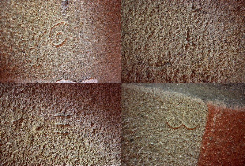 A modesta construción garda pequenos vestixios do seu longo pasado en forma de símbolos lapidarios conservados nalgúns dos seus perpiaños, marcas dos antigos canteiros que a levantaron. Outros elementos son máis enigmáticos, como as aliñacións de coviñas conservadas na base do muro lateral sur do templo.