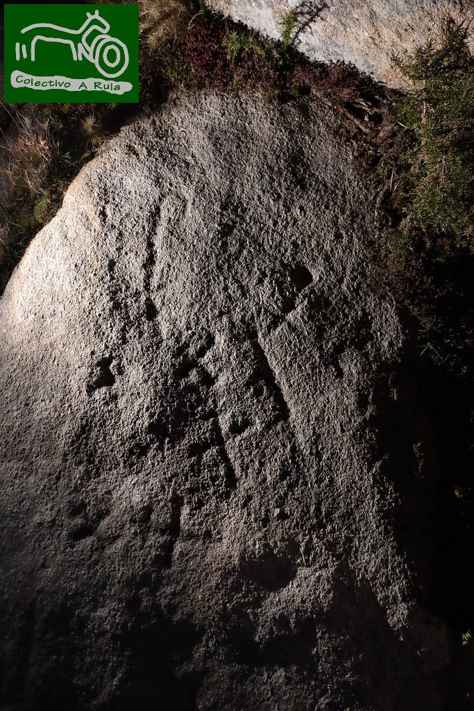 Nunha das pequenas superficies horizontais do cumio, que ocupa unha posición central no lado oeste, localízase o panel catalogado cunha pequena combinación de dous círculos concéntricos incompletos e coviña central. Ten un diámetro de 22 cm. A escasa distancia deste motivo un pequeno suco recto e unha coviña. A superficie ten unhas dimensións de 240 por 180 cm.