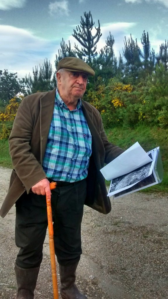 Os “ruleiros” participantes nesta xeira por Tapia recordaremos no futuro esta xornada que compartimos con Xoán e co profesor Fernando Alonso Romero, outro vello “roqueiro” que non quixo perderse a visita e redescuberta desta xoia rupestre de Ames.