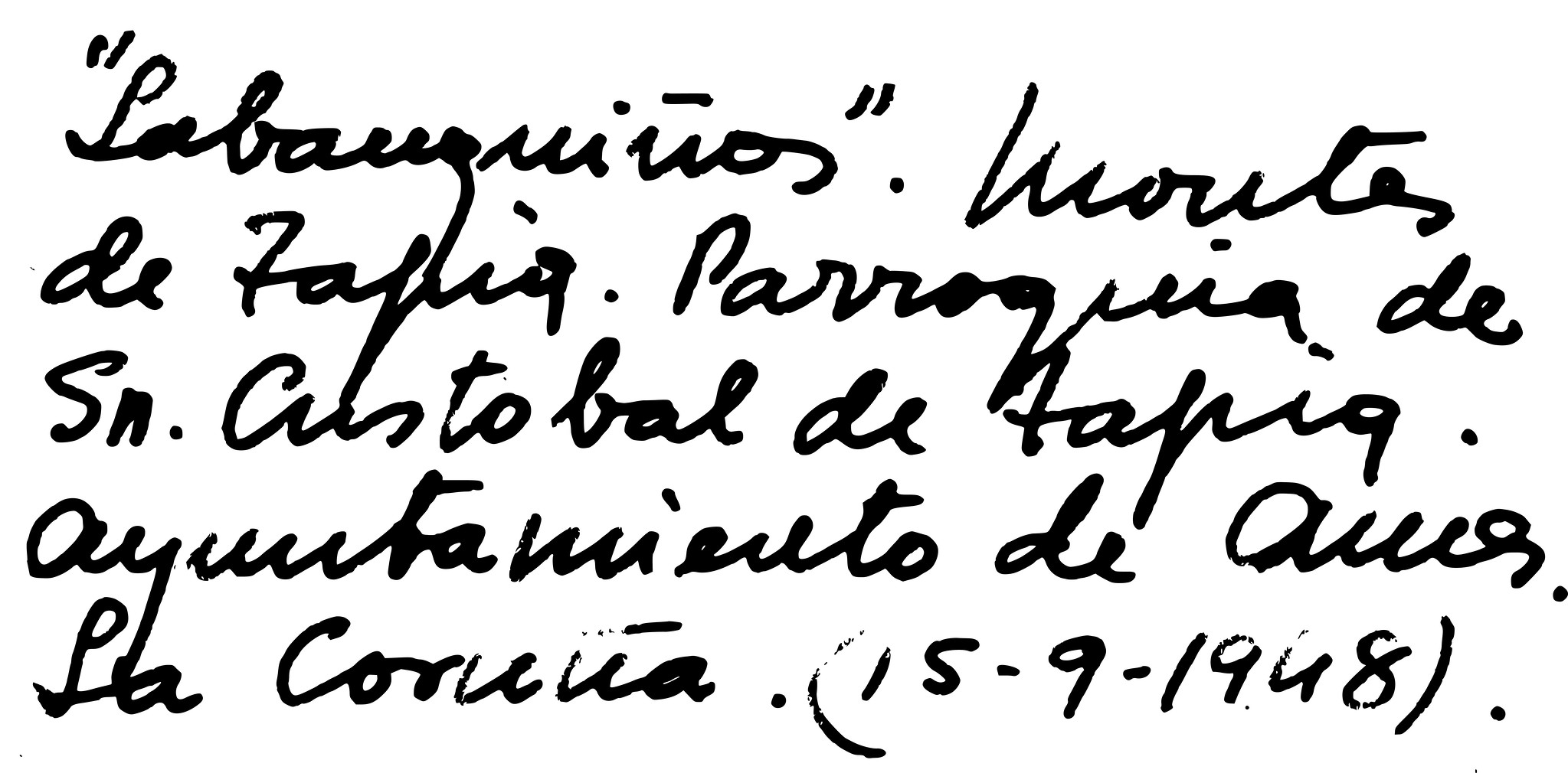 “Vamos a las 2 de la tarde a comer a Tapia con D.Óscar Lojo Batalla. Después con él a Labanquiños (monte de Tapia) y Liñaredo (monte de Ames), a ver dos petroglifos.”