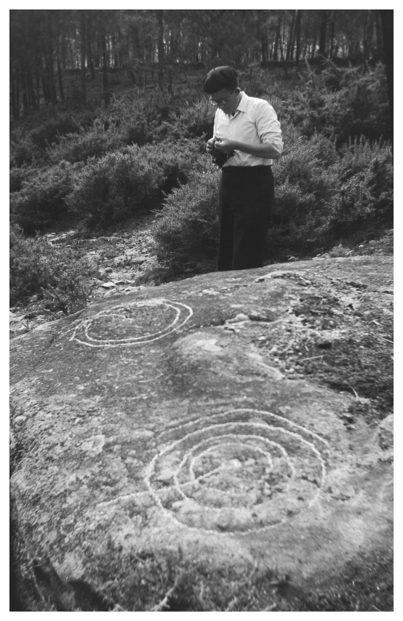 Polas súas anotacións no estoxo das fotografías sabemos que tamén estivo presente o naturalista e profesor da USC Gustavo Varela – Radío Gutiérrez de Caviedes (1908-2003), veciño de Lens, o outro colaborador habitual do arqueólogo por terras amesás. Foi unha longa xeira de 25 quilómetros polos montes de Tapia e Cortegada nos que tamén visitaron os petróglifos de Liñaredo que, por desgraza, aínda seguen en paradoiro descoñecido.