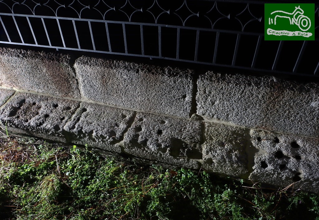 No seu interior un banco corrido en pedra acaroado ao muro de peche foi o lugar escollido para gravar os taboleiros. Contabilizamos un total de 8 exemplares de 9 coviñas, así como diversas coviñas soltas ao carón destes.