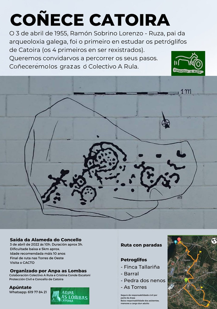 Porén, os gravados visitados nesta primeira xeira catoirense, ogallá haxa máis, constitúen referencias chaves na historia dos estudos do chamado Grupo Galaico da Arte Rupestre, froito do traballo e divulgación dun dos grandes investigadores da arte rupestre, “o home que máis sabía dos petróglifos” como cualificaba Carlos Alonso del Real a Ramón Sobrino Lorenzo – Ruza.