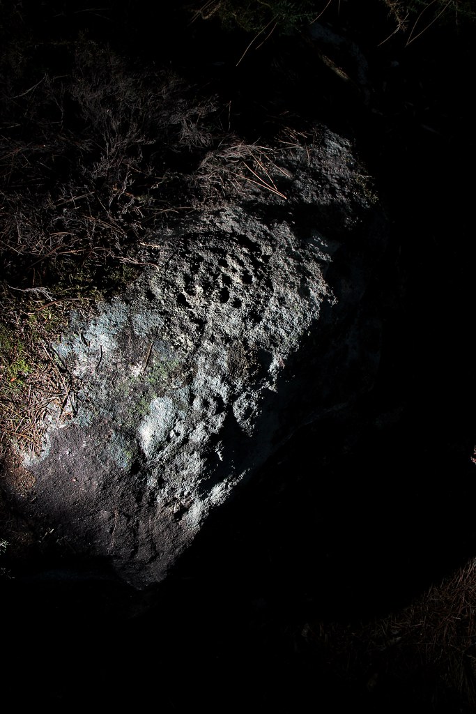 O segundo panel estaría, segundo sinala Sobrino Lorenzo, a uns 7 metros, formado por unha espiral e varias cazoletas e coviñas.