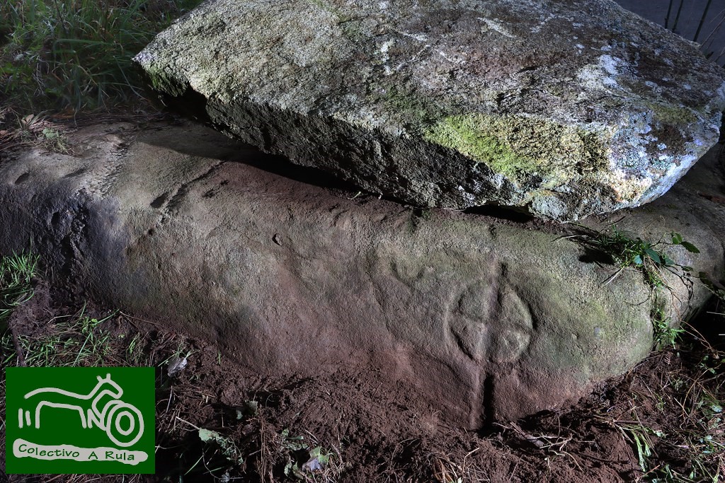 Sobre a rocha dos gravados apóiase un bloque granítico procedente das obras da estrada, que non nos permitiu revisar toda a superficie da laxe, sendo posible que exista algún outro motivo baixo esta pedra. Tampouco descartamos a presenza doutras figuras que sigan soterradas.