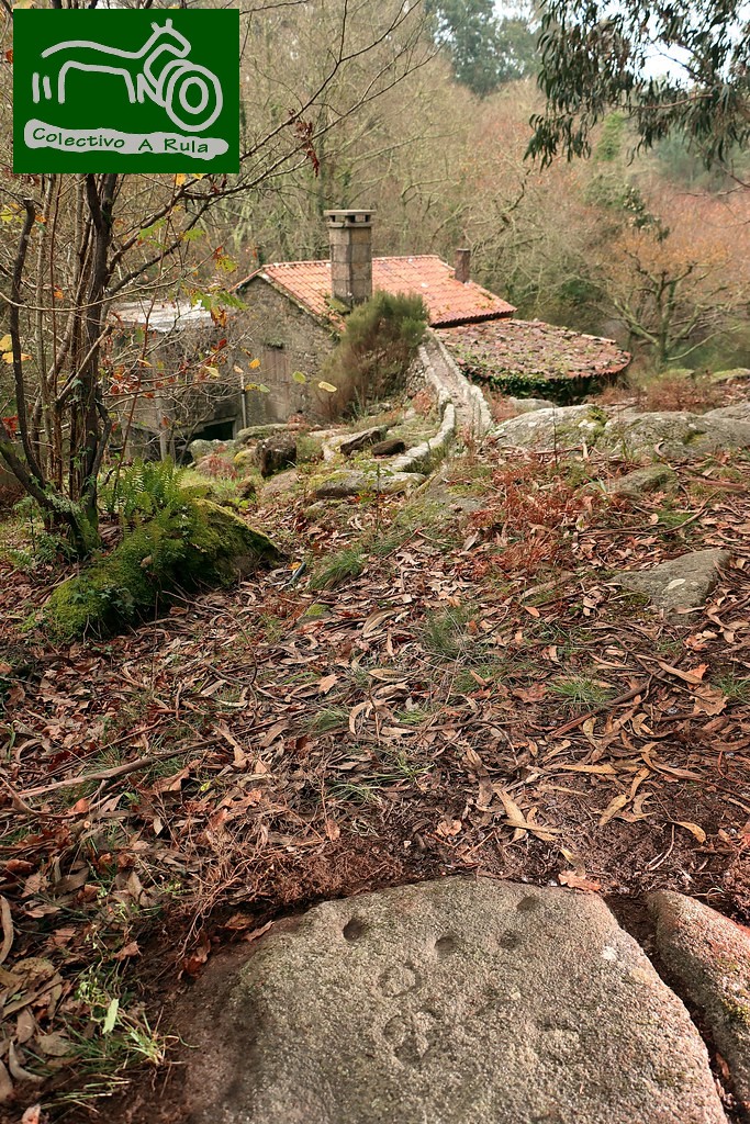 Ó carón da levada do chamado “Muíño do Gaspar”, no rego de Lourido, localízase unha pequena laxe situada a rentes do chan preto do muro que delimitaba o vello camiño de acceso ó muíño. Coordenadas UTM: 29 T 500763 4783957(Datum: WGS84). Alt: 49 m.s.n.m.