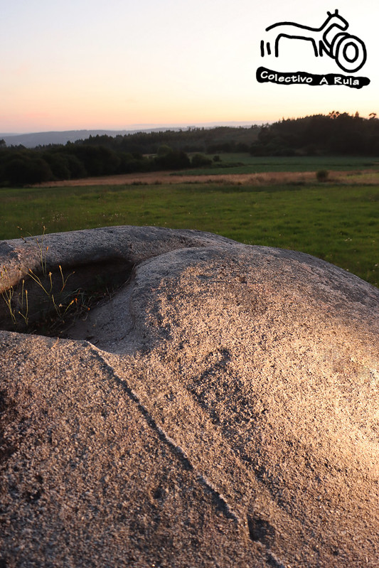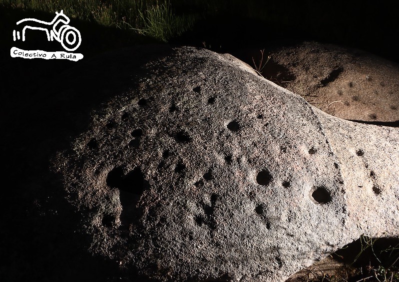 Nunha pradaría inmediata as casas, en dirección noroeste, sitúase un bolo granítico de algo máis de 5 metros de diámetro e case 2 metros de altura, en cuxa superficie se conservan os gravados.